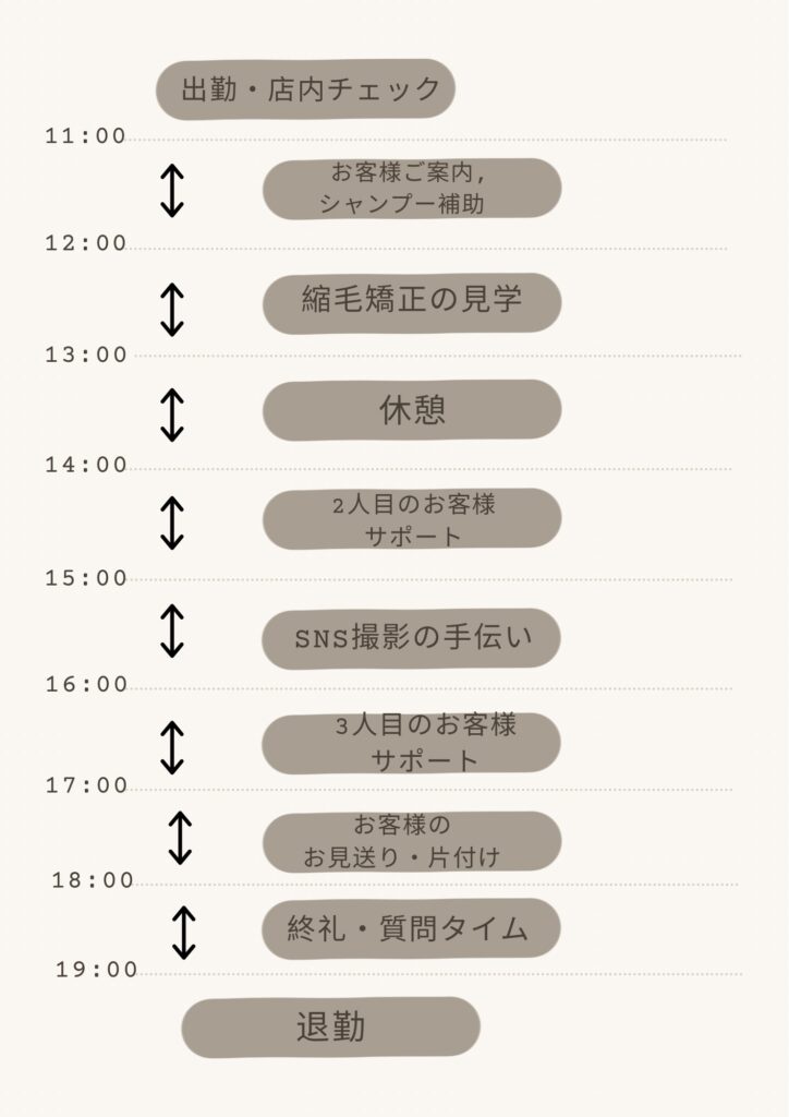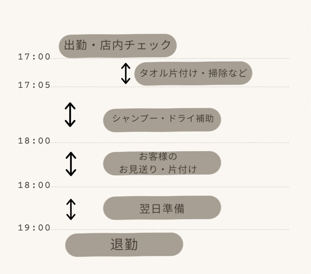 基本は「美容室のお手伝い」が中心です。